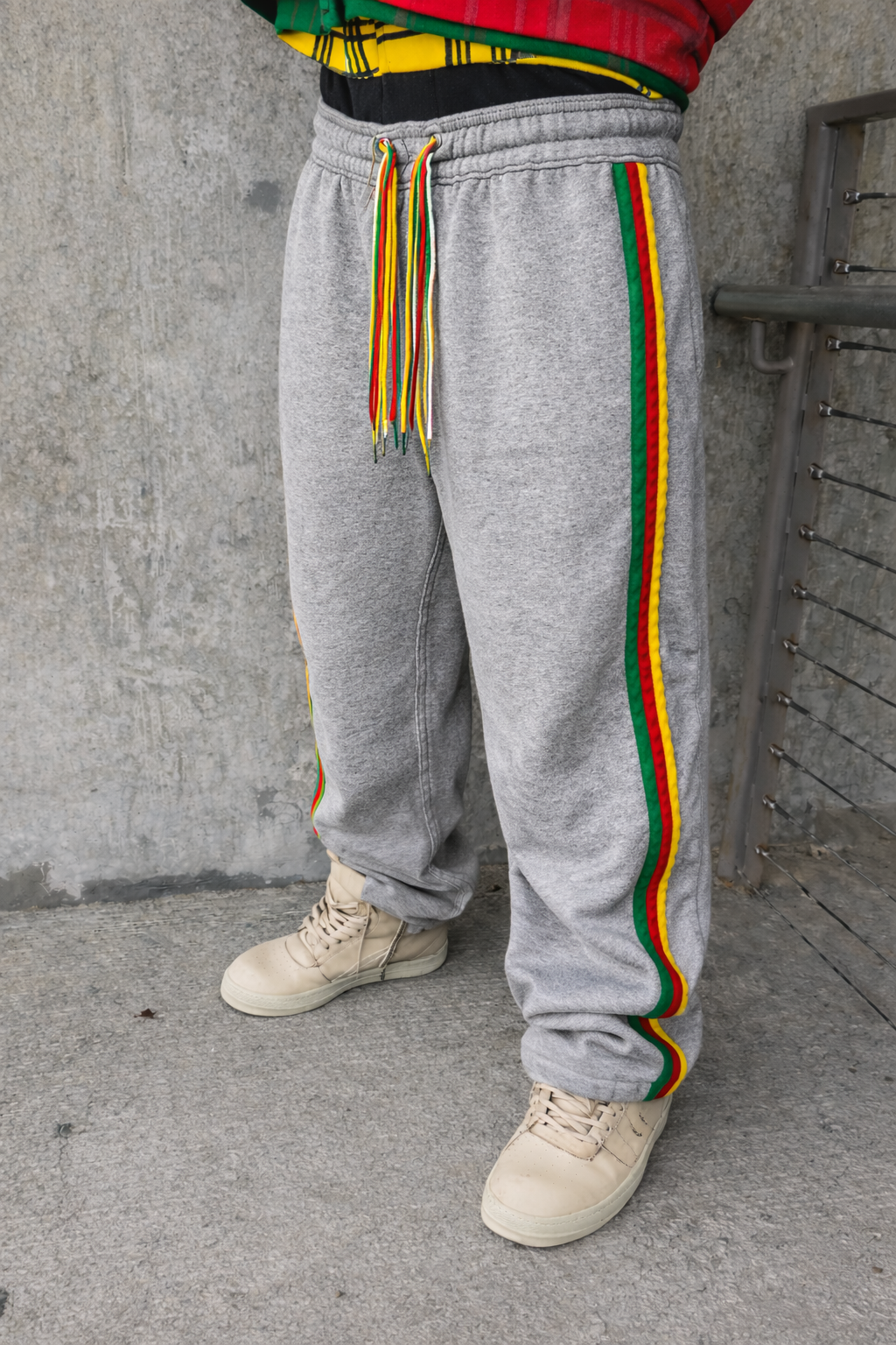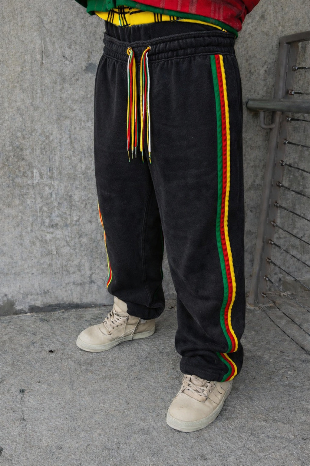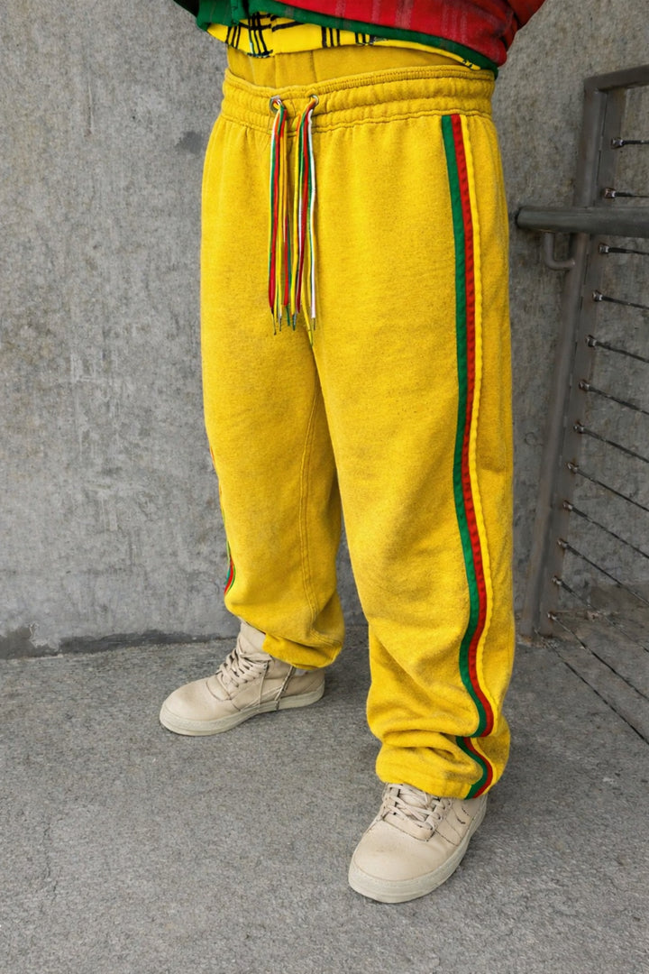 A RASTA STRING STRIPED DOUBLE WAISTED SWEATS